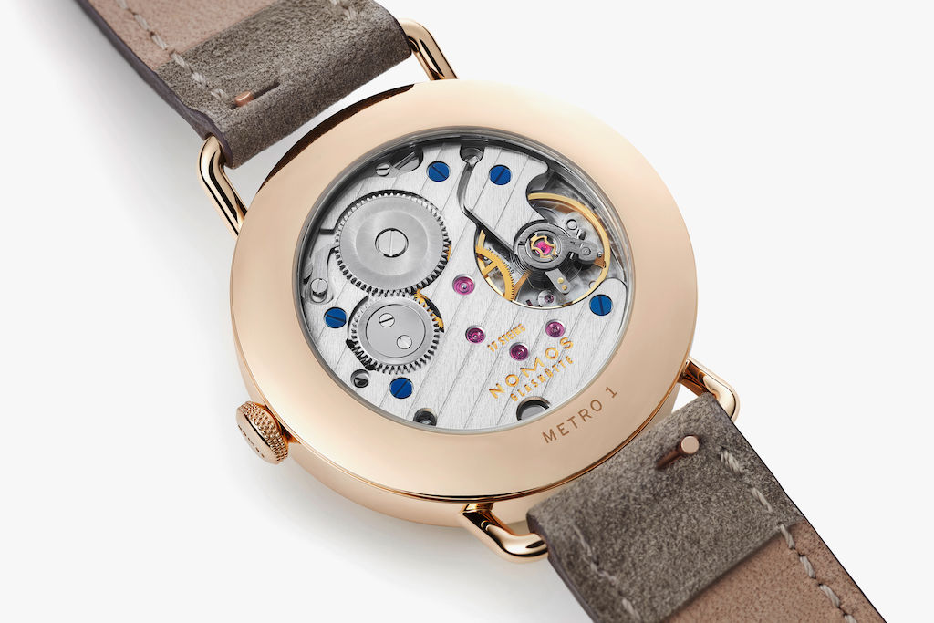 在2018年NOMOS首次推出以18K金材質打造的Metro手錶,一抹暖色調賦予手錶截然不同的感覺。而到了2019年NOMOS再度重新設計推出Metro Rose Gold 33,此次手錶錶徑縮減為33mm,且將機芯換成手動上鍊,讓喜愛此系列的消費者有更多的選擇。