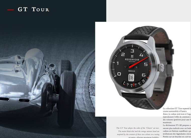 銳速表外形復古向經典致敬,重溫舊日時光。三大產品系列汽車、航空、航海的靈感源於速度,精準,力量相結合的機械領域。包羅萬象,蘊含征服之力。將雄性荷爾蒙裝飾於腕間,行走於天地。RESERVOIR銳速表已通過中國知名專業鐘錶平台鐘錶遊WatchTraveler引進進中國市場。自2019年9月24起正式開始在中國市場銷售。同時,RESERVOIR銳速表歡迎中國各個美麗城市的時尚店鋪和精品店的加入。