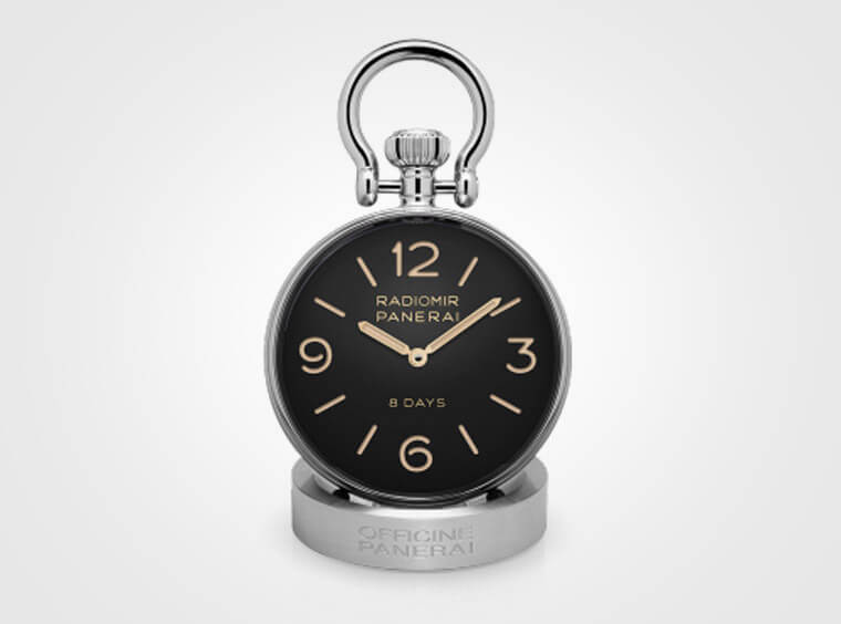 除了沛納海,也有別的品牌會推出座鐘,而通常座鐘相較於手錶來說,價格就顯得親近很多,例如PAM00581的定價就不超過台幣10萬,同樣的價格想要入手一只沛納海新錶大概不太可能。PAM00581的底座以及鐘身為不鏽鋼材質,沛納海使用球型礦石玻璃打造座鐘的弧形鏡面,需注意的是這款座鐘同樣不是吃電池的,它搭載以沛納海早期腕錶所用Angelus機芯為藍本的P.5000手上鍊機芯,在前後兩面的鏡面下分別可以看見二針鐘盤和機芯底板,透過鐘身12點方向設有馬鐙型保護裝置的大型錶冠可以幫座鐘上鍊,一如面盤所示,座鐘的動力儲存有8日鍊之久,可以整整一個禮拜之後再幫它上鍊,使用起來不會覺得太麻煩。