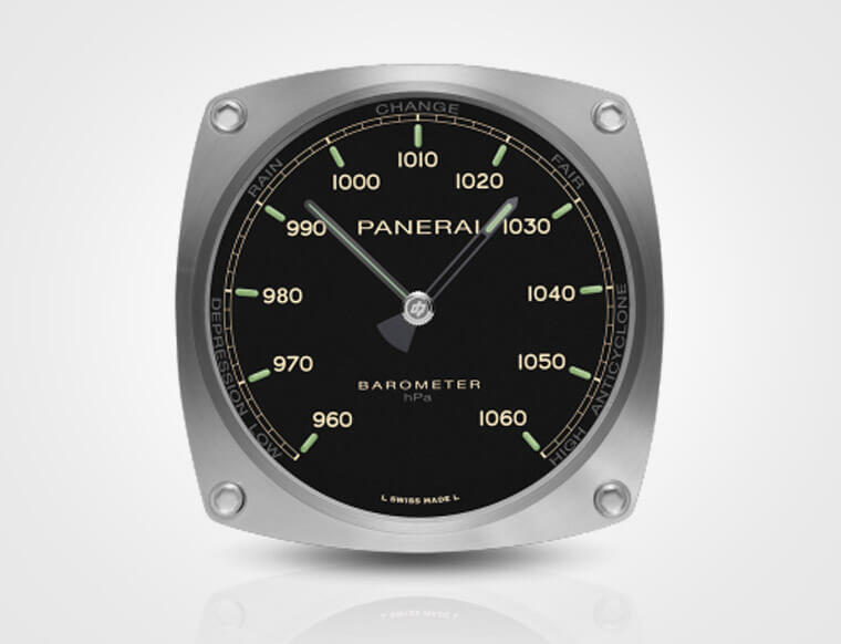 先較前面兩種產品都還有看時間的基本功用,PAM00582就是更偏收藏導向的裝置了,但它其實也是為了追溯沛納海早期製作航海儀器的歷史,這款氣壓計採用不鏽鋼材質打造,內部設有名為氣壓囊的金屬盒,作用就是它會隨著不同的氣壓壓力而收縮或膨脹,藉此帶動氣壓計盤面上的指針轉動,PAM00582最多能偵測到1060百帕,它的尺寸為14x14cm。PAM00582參考價:NT$ 136,000