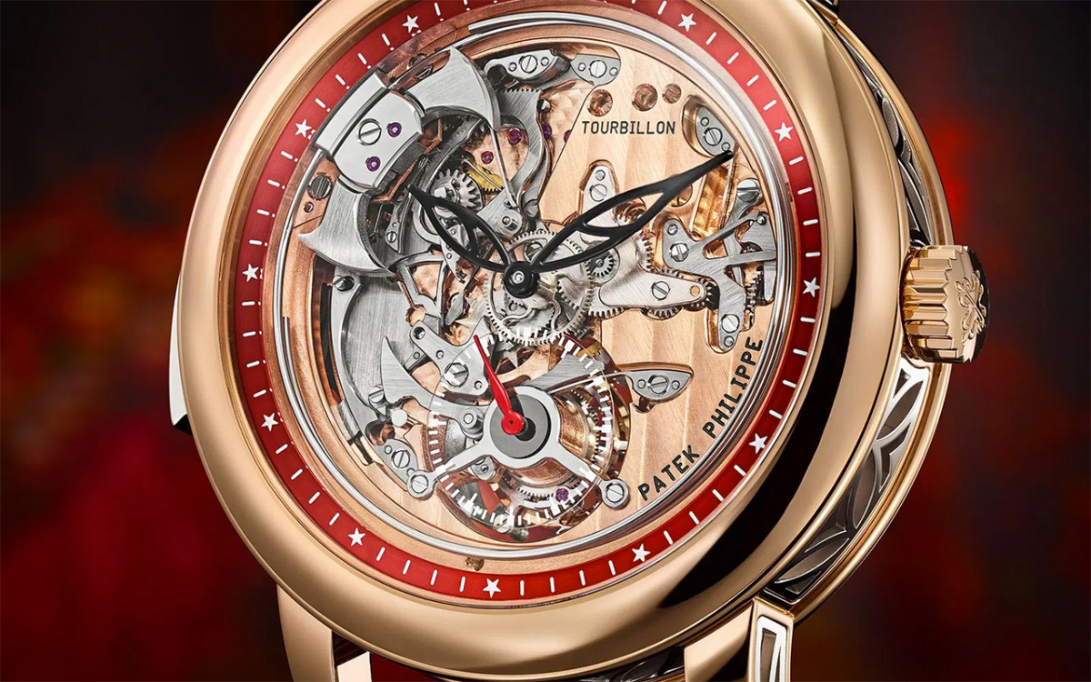 ▲面盤上紅色分鐘軌道圈搭配白色時標,其中包括12顆星星,百達翡麗以此向新加坡國旗致敬。