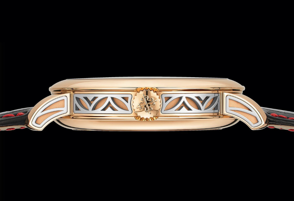 ▲5303R基本上和幾款前作規格大致相仿,例如18K玫瑰金錶殼以及錶側的手工飾釘圖案。