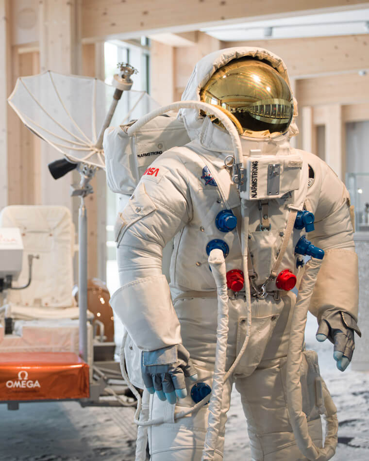 1965年歐米茄超霸手錶獲得NASA飛行認證,也成為第一款登上月球的手錶。在歐米茄的全新博物館裡,來訪的人們可以發揮想像力,想像自己身處太空。在展區中會發現自己的腳下是月球表面,身邊不遠處是一輛月球車;透過影片、照片、NASA科技與許多具備歷史意義的各式歐米茄「登月錶」。