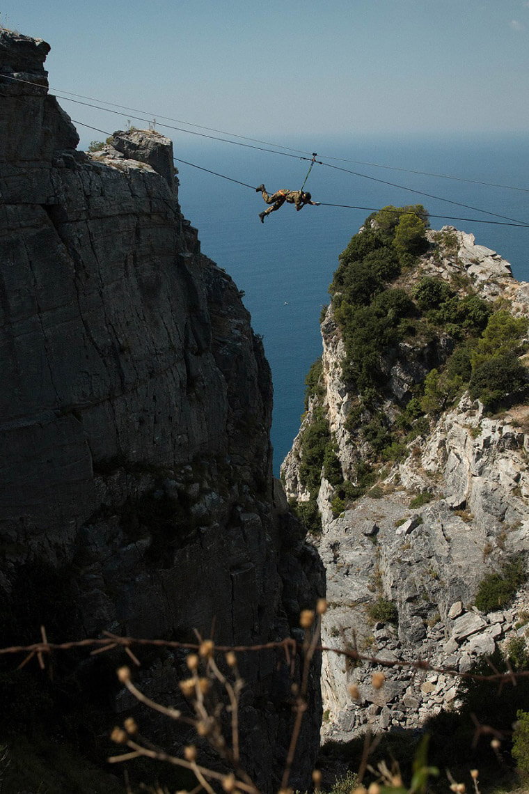 活動第二天的清晨,錶主們在GOS (Operational Divers Group) 潛水行動小組及GOI (Operational Raiders Group) 突襲行動小組的帶領下,參與數項節奏明快的海軍特種部隊訓練活動,例如下潛至海底深處、射擊練習,或者穿越佈滿障礙物的跑道以鍛練敏捷身手,再體驗沿著100米長的鋼索飛越200米高的斷崖,還沒完,錶主們還必須輕裝搭乘軍用直升機,飛往Muzzerone Fortress,參觀這座佔據Baia delle Grazie海灣戰略位置的堡壘。到了活動的收尾階段,錶主們終於不用再勞心勞力,沛納海幫他們安排最後一項活動是參觀Comsubin的潛水支援艦Anteo,讓他們親眼見識到特種部隊的海海人生,以及想成為一名職業軍人真的沒有想像中簡單。