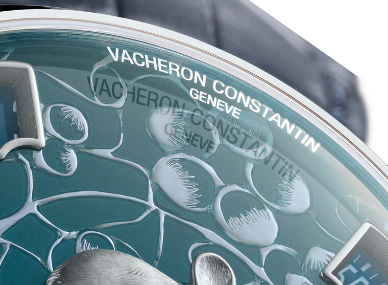 ▲面盤周圍的枝葉裝飾顯露一絲中國風,半嵌入設計讓圖案看起來更具立體層次,同時搭配鉑金或玫瑰金錶殼,江詩丹頓又分別運用藍色或棕色的琺瑯色彩加以裝飾。