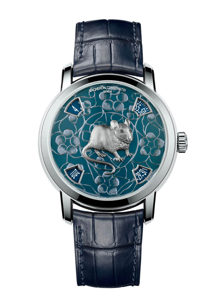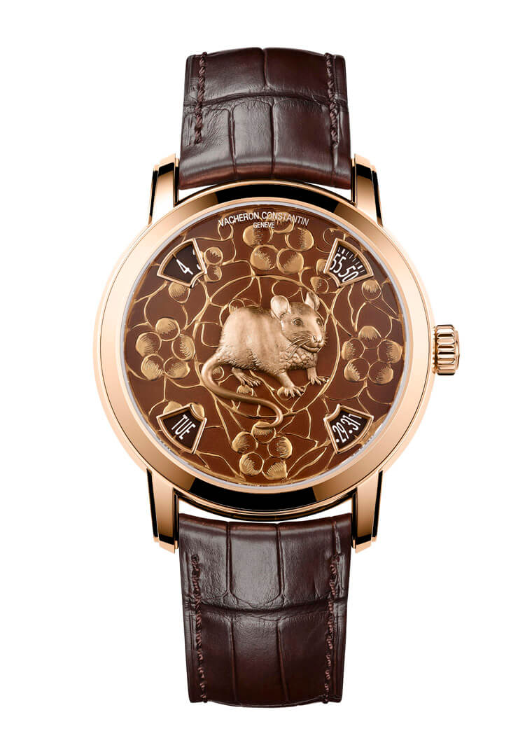 VACHERON CONSTANTIN江詩丹頓Métiers d’Art藝術大師系列The Legend of the Chinese Zodiac中國十二生肖錶款又到了新款登場的時刻,2020年將會是中國的鼠年,為此品牌也推出應景的生肖錶提前感染中國農曆新年的喜氣。老鼠是頑強生命力與智慧的象徵,2020年1月25日為農曆新年,江詩丹頓推出兩款鼠年錶新作各限量發行12 只,與之前的生肖錶一樣,錶款也是搭載2460 G4機芯,以視窗顯示的少見面盤格局將舞台留給中央的老鼠金雕。