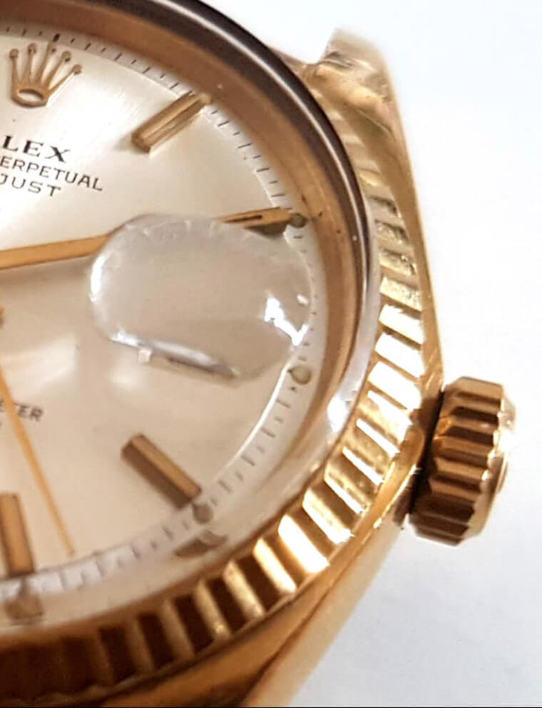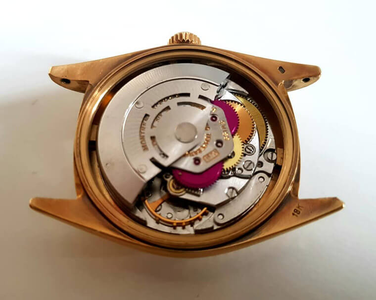 圖為Roger本身收藏的K金1601,它之前特別幫手錶訂製了透明底蓋,因為身為機芯控的他還是會想要偶爾看看機芯的結構,尤其是紅輪仔這種勞力士特色的機芯零件,另外,他這款1061的錶殼非常飽滿(錶圈與錶殼間有厚度),完全沒有拋磨整理過,這符合Roger本身的收藏原則,看來這款的價值現在應該比前面提到的鋼殼還要再好上一些。