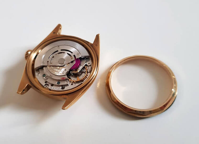 ▲飽滿的錶殼比較值得收藏。可以看到錶圈與錶殼外緣尚有距離,表示錶殼厚實無拋整。
