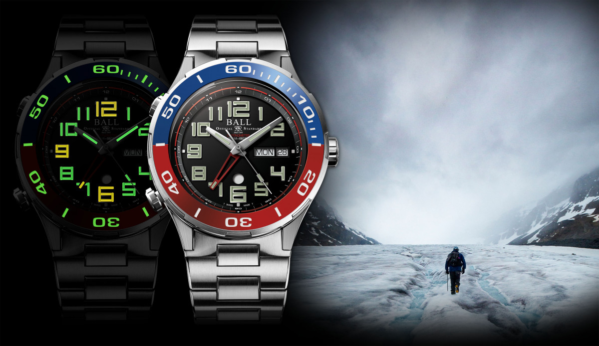 不鏽鋼材質/BALL RR1303-C自動上鍊機芯/時、分、秒、日期、星期顯示/兩地時間顯示/日夜顯示/藍寶石水晶鏡面、透明底蓋/防水300米/錶徑40mm/參考價:NT$ 66,410/另有黑面盤款式