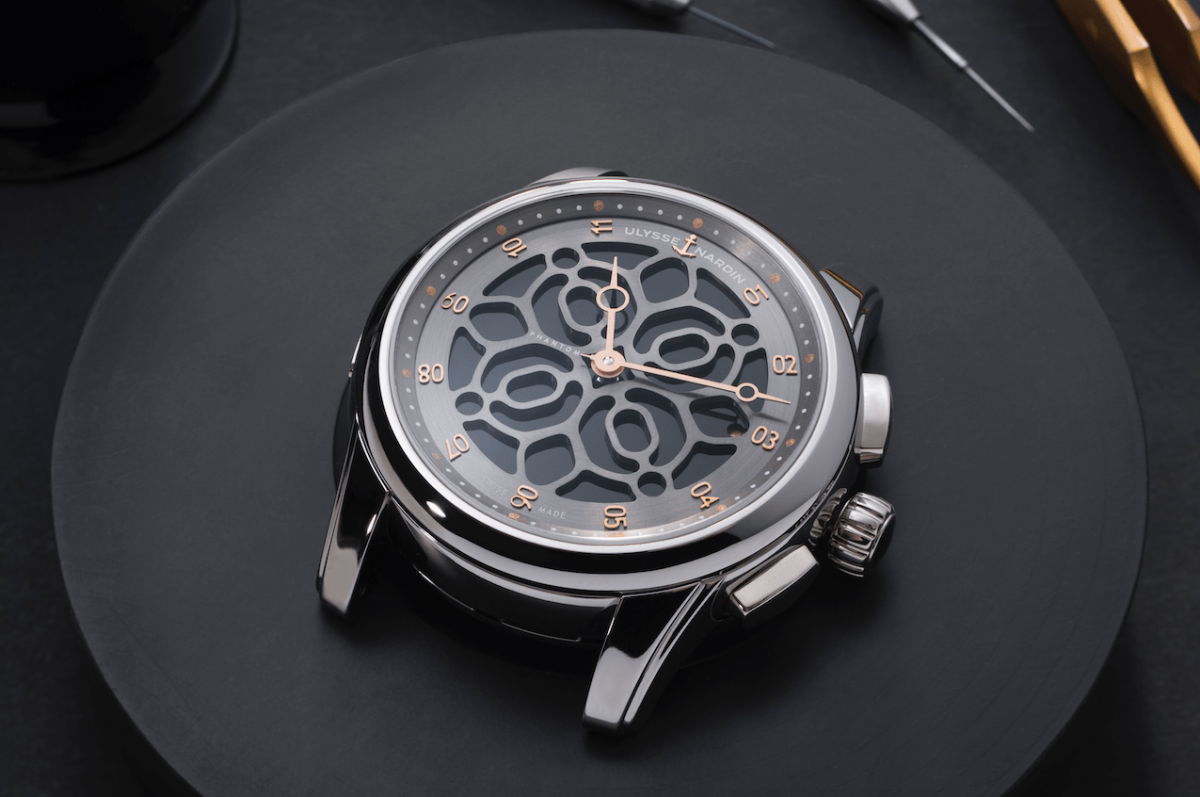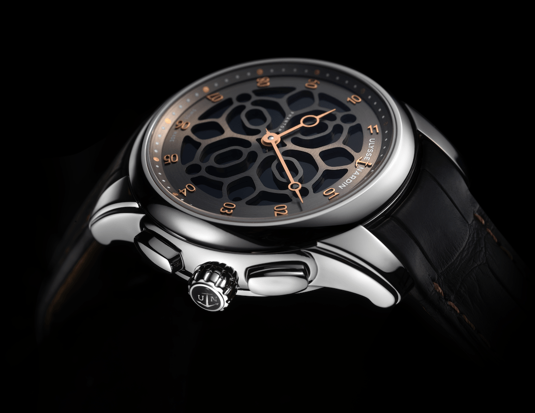 在手錶錶背的薄膜下方,設有環繞UN-610自動機芯的八個傳音開口。此種設計帶來了令人震撼的效果:該款手錶的聲音潛力均得到釋放,並進一步放大和增強。此外,該款手錶搭載全拋光43毫米鈦金屬錶殼,有助於增大音量,並將其共振擴展到85分貝,達到製錶界罕見的音效水準。