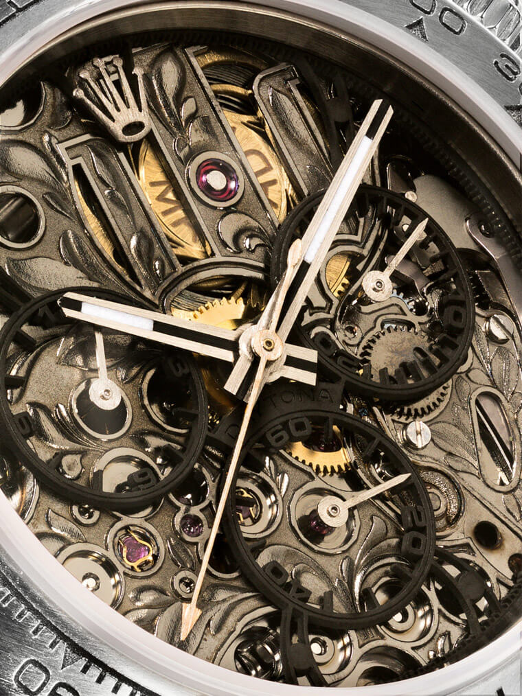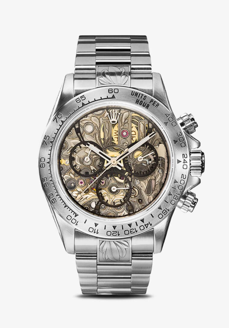 ▲法國手錶改裝品牌近期推出他們新款的Daytona改裝錶——Daytona Openwork SK II,以鏤空和金雕兩項工藝賦予手錶嶄新樣貌。圖片:brownsfashion.com