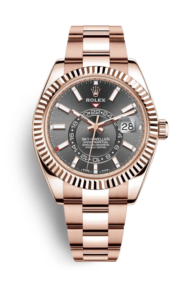 Sky-Dweller目前最基本的款式就是半金錶殼,當中可分成白金半金和黃金半金,再上去則有黃金和永恆玫瑰金等兩種貴金屬錶殼,搭配品牌近年來陸續補充的不同顏色、錶帶改款,讓這系列目前一字排開共有16種款式可選擇,如果扣掉一些重複的面盤改色款式,實際上Sky-Dweller大致可分為六種款式,分別是白金半金搭鍊帶、黃金半金搭鍊帶、黃金搭皮帶、黃金搭鍊帶,以及永恆玫瑰金搭皮帶,還有永恆玫瑰金搭鍊帶等,之所以會分成這六種款式還有個原因在於它們雖然搭載的機芯相同、外觀造型也一致,但是隨著款式與款式之間採用不一樣的錶殼與錶帶材質,從中就會造成手錶價格的變化,照常理來說半金肯定比貴金屬便宜,但貴金屬之間就不一定會有落差,由於勞力士的永恆玫瑰金算是融合了品牌的獨家配方,因此從Sky-Dweller各款的定價中可以發現永恆玫瑰金的定位似乎比黃金還高一些,而如果要把最入門的半金Sky-Dweller和最高端的玫瑰金鍊帶Sky-Dweller兩款價格比一比,你會發現兩者的價差其實還滿驚人,以下就來了解不同款式之間的Sky-Dweller價格到底是多少。(價格由低到高排列)