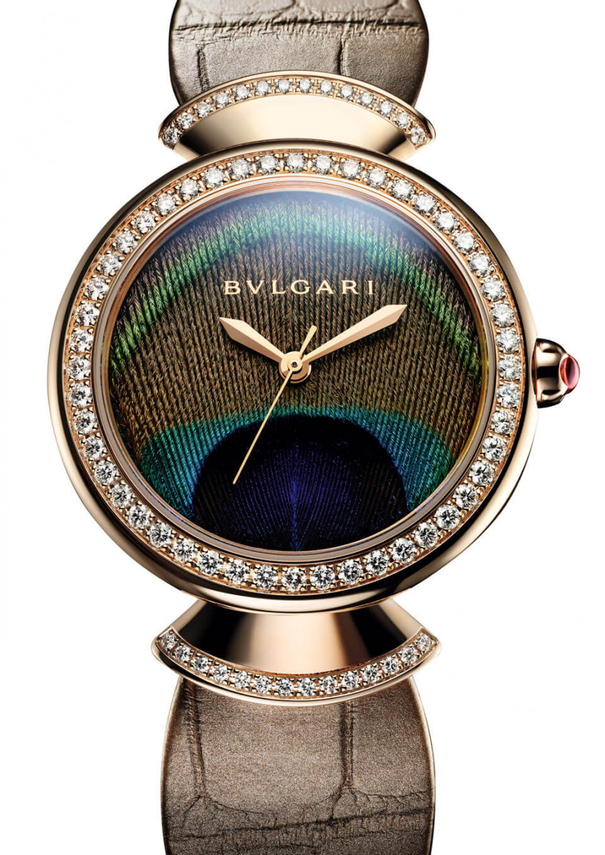 ▲ 寶格麗以真實的孔雀羽毛打造Divas' Dream Peacock腕錶,在高級珠寶錶上玩轉異材質與鮮豔色彩,不只延續多彩的義式格調,也展現天然魅力。
