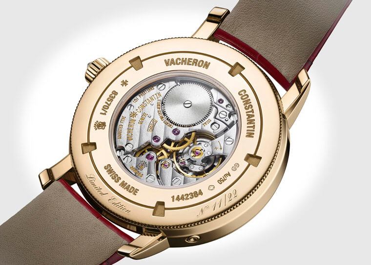 Traditionnelle系列「時光之網」中國限量版男錶採用直徑38毫米的18K 5N玫瑰金錶殼,日期顯示視窗和小秒盤分別位於面盤3點鐘及9點鐘位置,並搭載了品牌自製2455自動機芯,擁有約40小時的動力儲存。此外,這款擁有結構精密和經過仔細打磨修飾的機芯,翻到錶背可以欣賞到它採用22K金的馬耳他十字造型鏤空自動盤,而機芯底板和底蓋邊緣都刻有日內瓦印記標誌,代表手錶的機芯作工與走時品質都通過了嚴格的檢測標準。