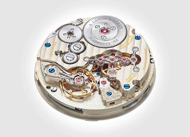 朗格替ZEITWERK DATE量身打造了一枚新機芯L043.8,若光看錶款的顯時功能:時、分、小秒加上日期和動力儲存顯示,通常機芯零件大約一、兩百枚左右,但是L043.8機芯的零件數量卻是它們的數倍之多(一共由512枚零件組成)!可見跳字機制、恆定動力擒縱以及日期盤的製作難度均比傳統設計更精密複雜,附帶一提腕錶在錶殼4點方向還有一枚按把,它的作用是快調小時,過往ZEITWERK若要校正小時資訊必須逐分轉動,若是在整點出頭要把小時往後調整,對佩戴者而言會是一件苦差事,如今ZEITWERK DATE開啟系列先例的小時快調一方面讓調整時間更快速,甚至還在機芯結構中增加了「隔離」組件,也就是一旦佩戴者按下按把,機芯內部的離合器會暫時分開連動的小時環與跳字機制,佩戴者調校小時環的動作等於是獨立於運作中的機芯之外,如此一來當佩戴者鬆開按把,這些相關組件再次聯繫起來時,就能夠確保機芯的走時準度不會因此而受到影響。至於機芯內部的恆定動力系統除了可以按照固定的能量與週期設定均勻輸送動能給擒縱裝置,它還能以一分鐘為單位,規律地傳遞動能到跳字顯示的三枚圓盤上(包括一枚小時盤,以及顯示分鐘所需的兩枚圓盤),確保走時的品質可以持續維持在高檔。