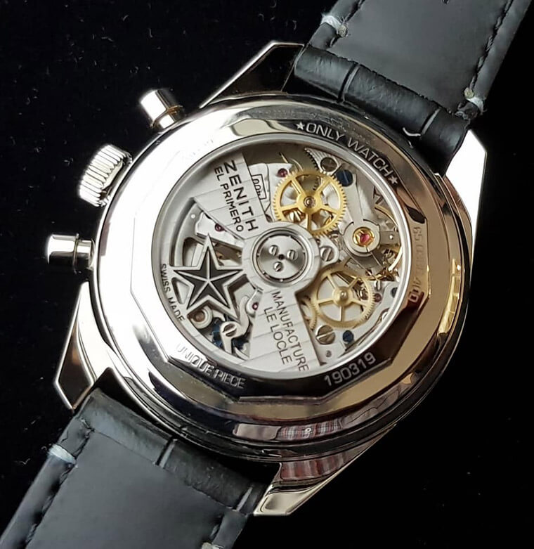 ▲搭載古董的Valjoux 235手上鍊計時機芯。雖然是實心後蓋,不過刻上Only Watch更有收藏價值。