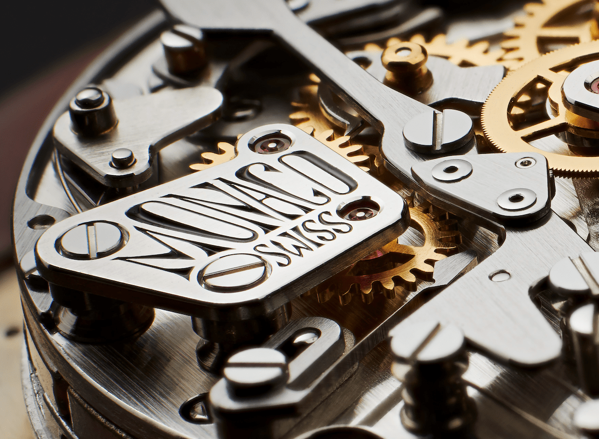 ▲計時器橋板上巧妙刻鑿出"Monaco"字樣。