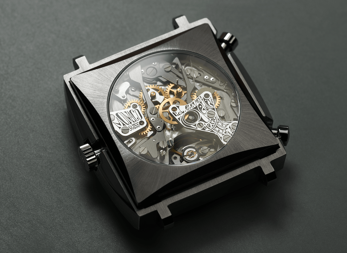 Monaco Piece d’Art經過TAG HEUER古董錶售後服務部門專家的重新設計。此款時計精選自瑞士拉紹德封總部的泰格豪雅博物館,錶款採用原版Calibre 11機芯——1969年Monaco手錶搭載的首款自動上鍊計時機芯,並搭配原版不鏽鋼錶鍊。這款絕無僅有的匠心之作最特別之處,是其經過鏤雕的機芯,可透過透明錶背,將機芯之美盡收眼底。錶背原本為封閉式,但TAG Heuer泰格豪雅工藝精湛的製錶師,在不鏽鋼上切割出一個圓圈,並以藍寶石水晶玻璃取而代之。這項別出心裁的技藝手法,令鏤雕機芯一覽無遺。