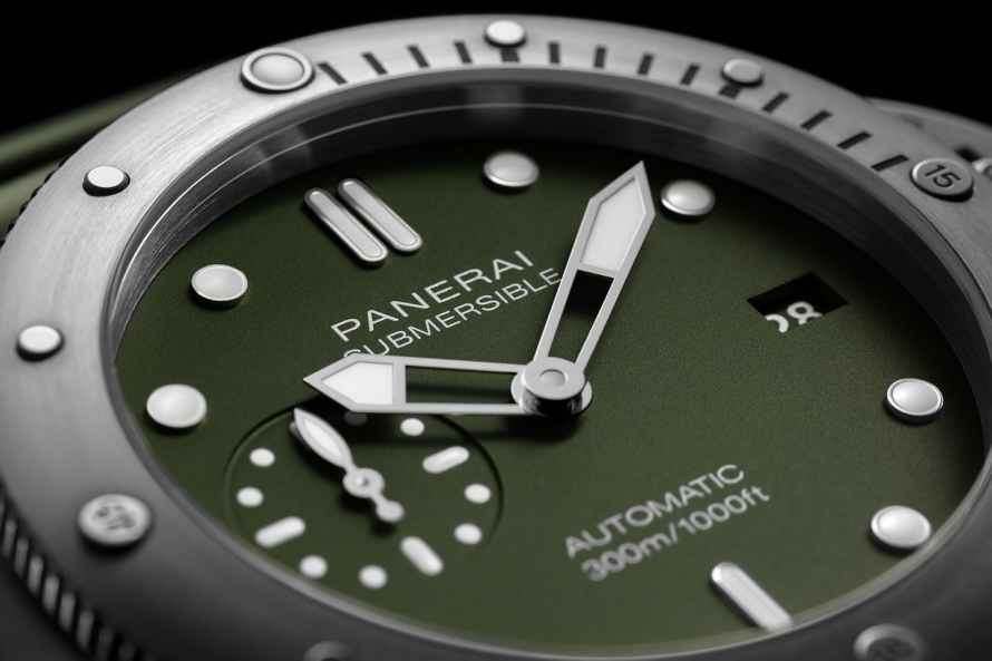 PANERAI沛納海近日推出一款只在網路販售的特別版手錶──Submersible Verde Militare(PAM01055)。此款手錶能縱橫極端環境,憑著優異品質應付最具挑戰性的運動,它維持了Submersible潛水錶系列的專業機能設計,另外於面盤配色上則是做出系列前所未見的嶄新嘗試。
