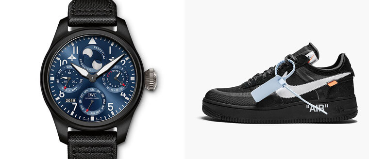 IWC Big Pilot’s Watch Perpetual Calendar Edition “Rodeo Drive” Timepiece VS Off-White™ x Nike Air Force 1 Low “Black”