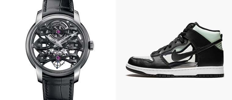 GIRARD-PERREGAUX Neo-Tourbillon with Three Bridges Skeleton VS COMME des GARÇONS x NIKE Dunk High “Clear”