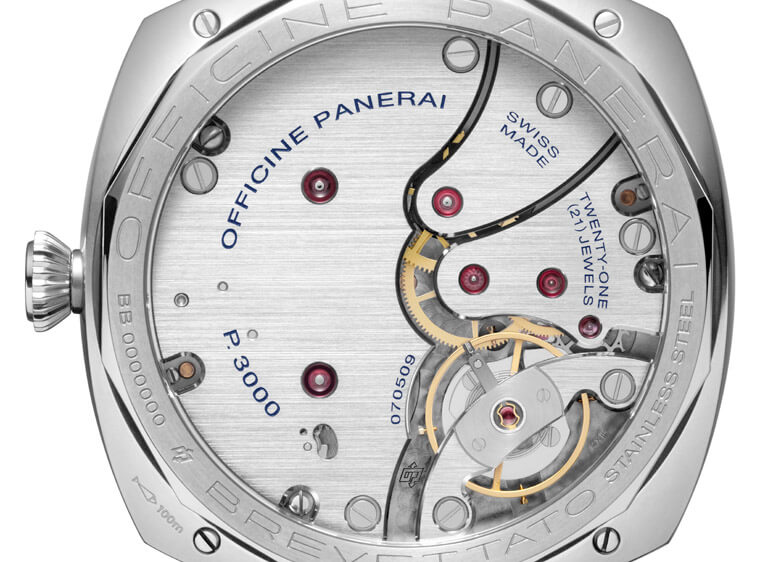 ▲沛納海的機芯夾板通常是以精緻的拉絲處理。