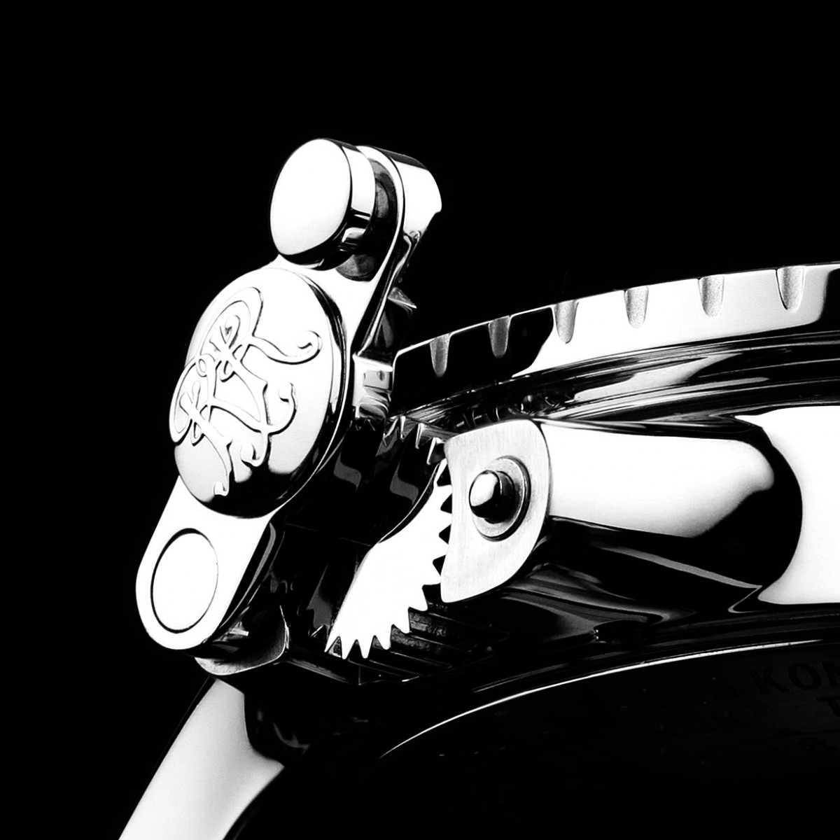 腕錶更配備防磁4,800 A/m功能,以保障機芯精準度不受日常生活中的磁場影響。特式錶冠以兩部份組成,護肩能保護錶冠免受撞擊,而保護片則確保在調校時間後錶冠是完全鎖上,保障其防水功能。經嚴謹的測試,腕錶能抵禦7,500Gs撞擊及防水達100米。優質不銹鋼所鑄造的專利三摺錶扣能抵禦1400牛頓衝力。強悍之餘亦顧及配戴時的舒適感,蝴蝶扣式設計不論男女均合適。