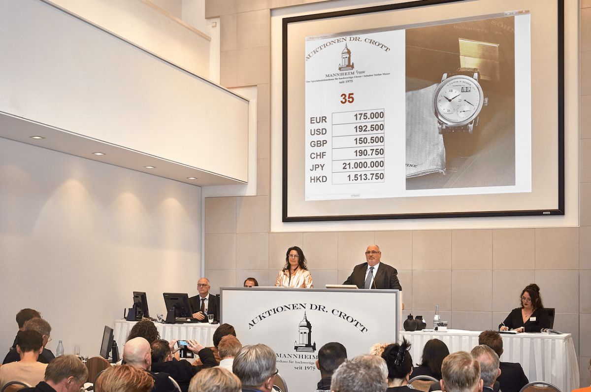2019年11月15日至16日,Dr. Crott拍賣行於德國法蘭克福舉行了第100和101場拍賣會,其中朗格於新時代首批製作的Lange 1手錶也在這場拍賣會上進行拍賣。其中一款於1994年面世的Lange 1(Lot 634)為18K黃金款,搭配原廠實心底蓋,最終成交價為42,700 歐元。該型號在出廠時只有少量手錶採用螺絲固定的底 蓋,因為後期作品便改用了藍寶石水晶玻璃底蓋。