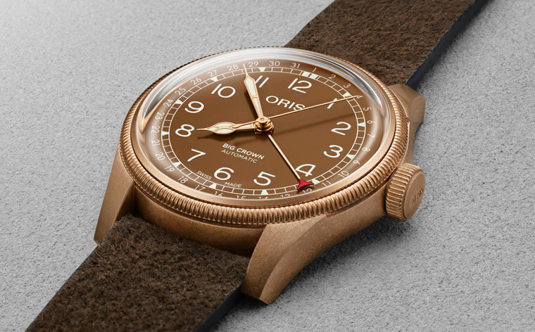 2019年末ORIS推出的這款Big Crown指針式日期青銅錶最大特徵就是再度用上了青銅材質製作錶殼,同時錶殼還特別塗上了一層透明暗光漆,這也讓手錶的光澤看起來與純粹拋光比較不一樣,據品牌榮譽董事長Dr. Rolf Portmann所說,之所以會想再次推出青銅錶殼的Big Crown指針式日期錶,這是因為他們認為在現今高度數位化的時代中,有時人們嚮往的反而是能說出自己故事的東西,因此這款手錶的青銅材質能夠以氧化來做到這件事情。