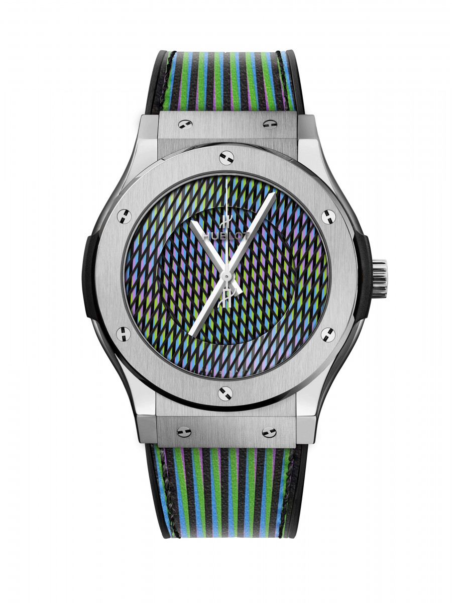 2015年的經典融合系列Cruz-Diez手錶使用雷射色彩的漸變線性面盤設計。2019年的經典融合系列Cruz-Diez魔幻時刻手錶,則透過有如光碟的炫彩線條配搭兩層式面盤設計,小時指針在第一層,分針在第二層,每一層都驅動著印有黑色網格線條的透明轉盤。這個獨創機制讓色彩圖案以24小時為周期,兩者的條紋與色彩的交錯下,每分每秒不斷產生變化。呈現不同的視覺效果。