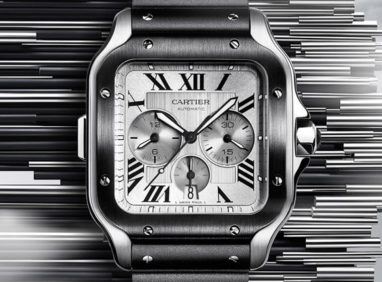 2019年卡地亞推出了新款的Santos de Cartier手錶,這次手錶升級成和飛行錶也滿速配的計時功能,一下子讓面盤顯得充實不少。Santos de Cartier計時碼錶尺寸為43.3x43.3mm,展現運動錶天生的大氣粗獷感。值得一提的是,這次的Santos計時碼錶不鏽鋼款在錶圈部分特別採用ADLC塗層小小裝飾一下,跟2018年三針款純粹不鏽鋼的銀白色澤比較,看起來會更有層次變化感。與一般計時碼錶有點不同的地方是,卡地亞是把操控計時功能的機制設在錶殼9點方向,這枚按把可以用來啟動/停止計時功能,不過歸零卻並非透過同一枚按把進行,反而是要藉由錶冠,這種左右互搏的計時功能使用方式,對於剛接觸這只錶的人而言或許需要一點時間適應,但相信不會是什麼大問題。