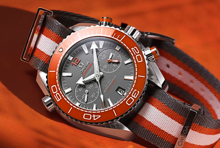 歐米茄將鈦金屬材質加入品牌經典的Planet Ocean系列,第一眼望去,便能清楚見到這款全新海馬Planet Ocean的灰色面盤質感不太一樣,這正是瓷化鈦金屬呈現的獨特效果。面盤上的鍍銠指針與刻度,以及3點鐘計盤清漆指針、鑲貼數字12與中央秒針尖端等橘色元素,進一步襯托瓷化鈦金屬面盤的視覺效果。為了讓手腕成為眾人矚目焦點,歐米茄為這款腕錶配上五條紋橘色、灰色與白色聚醯胺NATO錶帶,呼應了錶殼、錶圈及面盤的顏色。錶款搭載9900大師天文台機芯,機芯通過比C.O.S.C.認證還要難過關的METAS認證,除了各方面性能不俗,它的亮點在於能抵抗高達15,000高斯的磁力,換句話說,在一般佩戴情境下,手錶錶幾乎不會有受磁的疑慮。