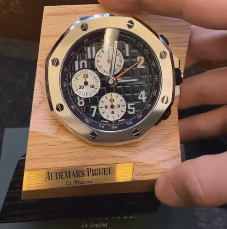 由於John Mayer收藏了許多AP愛彼的錶,相信他早就是品牌的VIP了,加上又是名人,所以品牌有什麼好康先想到他也是很合理的事,最近有錶友在愛錶咖上就分享了他看到John Mayer在個人Instagram的現實動態上發了一則動態是他收到了AP送給他的一款座鐘,他特別Tag了愛彼向他們致謝,並且還用”This is Great”來表達他對這份禮物的滿意程度。