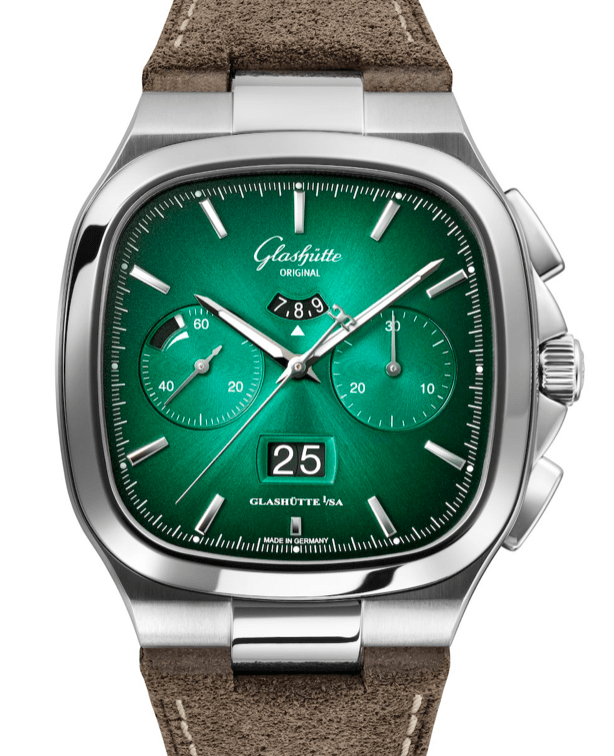 自從五年前GLASHÜTTE ORIGINAL格拉蘇蒂原創首度面向全球高端時計推出Seventies Chronograph Panorama Date 七零年代大日期計時錶後,其就受到市場的矚目。之所以如此風靡是因為它做到了品牌自主生產實力與格拉蘇蒂豐富製錶傳統的高水準融合。而在2019年,這款計時碼錶新增兩款限量版,分別採用綠色和灰色面盤配色,用來致敬格拉蘇蒂製錶師們170年來賴以汲取靈感的醉人美景。