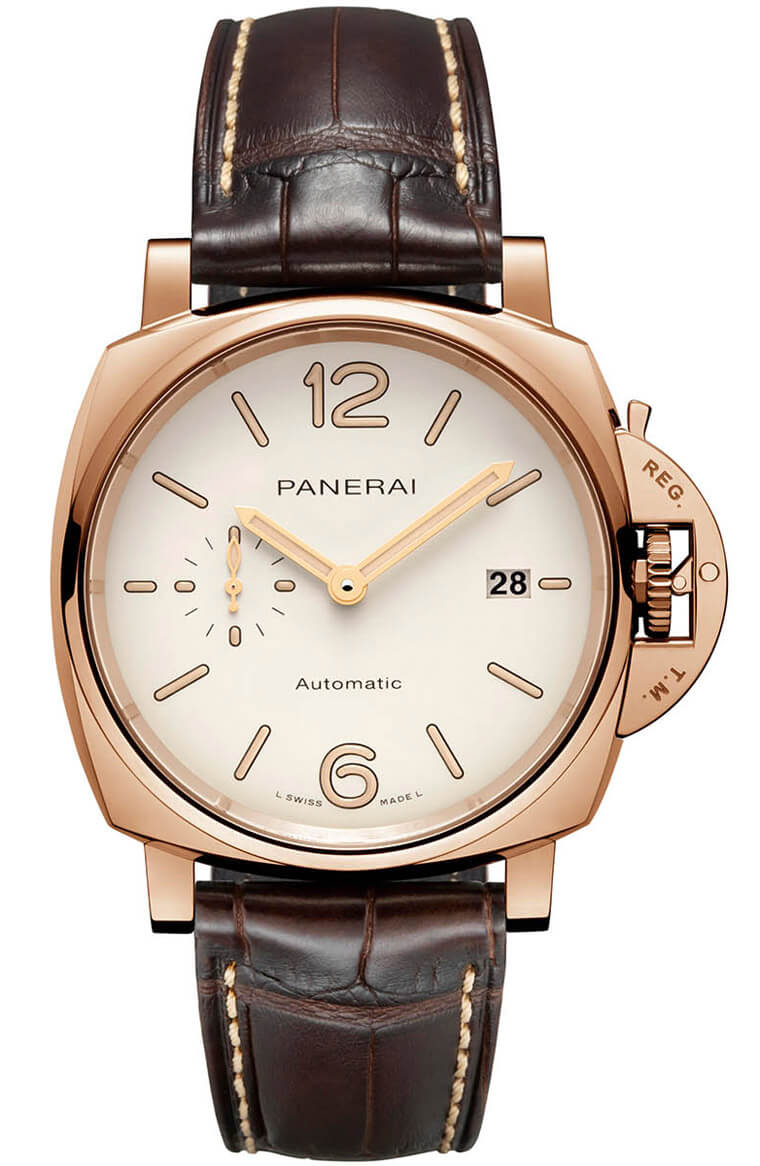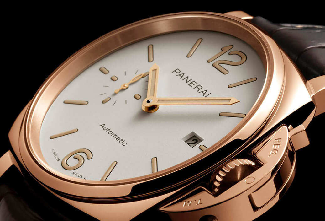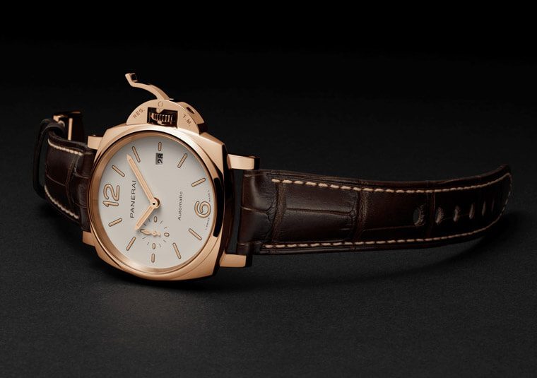 ▲沛納海42mm的Luminor Due家族新添兩款小三針手錶,它們都採用品牌獨家研發的Goldtech紅金材質製作錶殼。