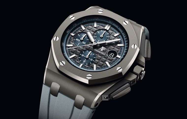 ▲愛彼的皇家橡樹離岸型系列首度出現灰色陶瓷款式,其搭配近乎像是系列標準配備的計時功能,再加上雙色面盤設計,吸引人的視覺目光。
