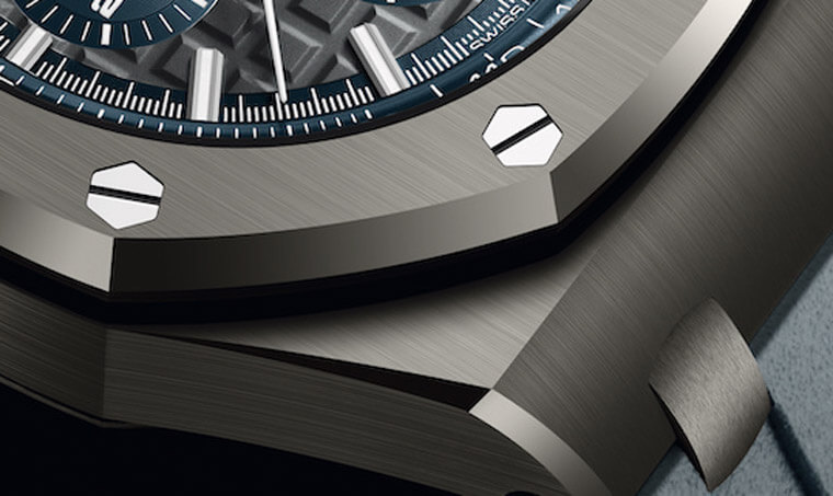 ▲灰色陶瓷錶殼表面經過拉絲處理,零件邊緣則有倒角拋光處理,顯見愛彼對於製作陶瓷這種高硬度材質的掌握度不在話下。