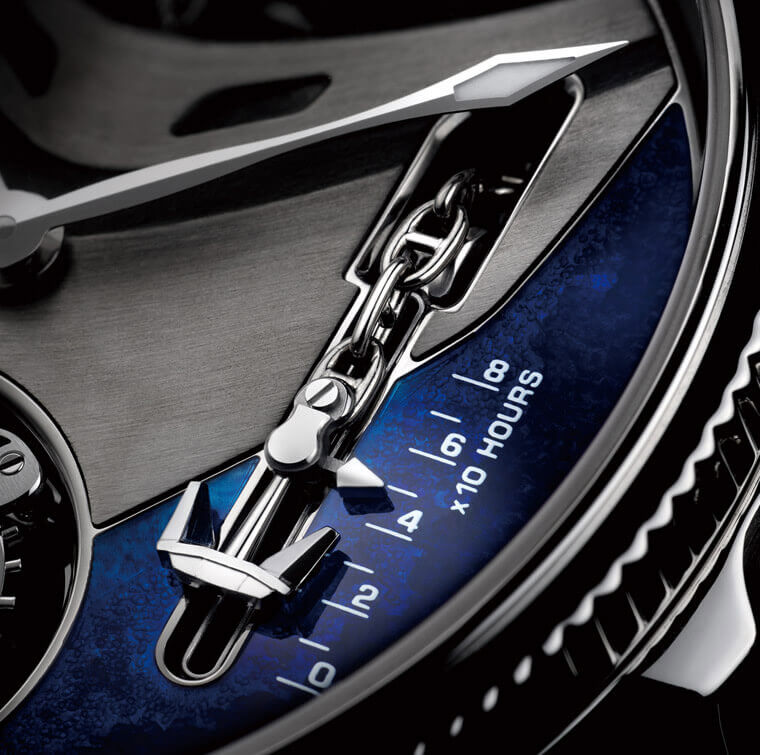 ▲嚴格來說這款的儲能顯示就是單純的線性顯示,錨鍊和海錨都是外加的,無關實質功能,不過儘管作為「裝飾」,背後的技術仍然很可觀,錨鍊的絞盤甚至用上了游絲,讓它在海錨上升時能自動捲起錨鍊。