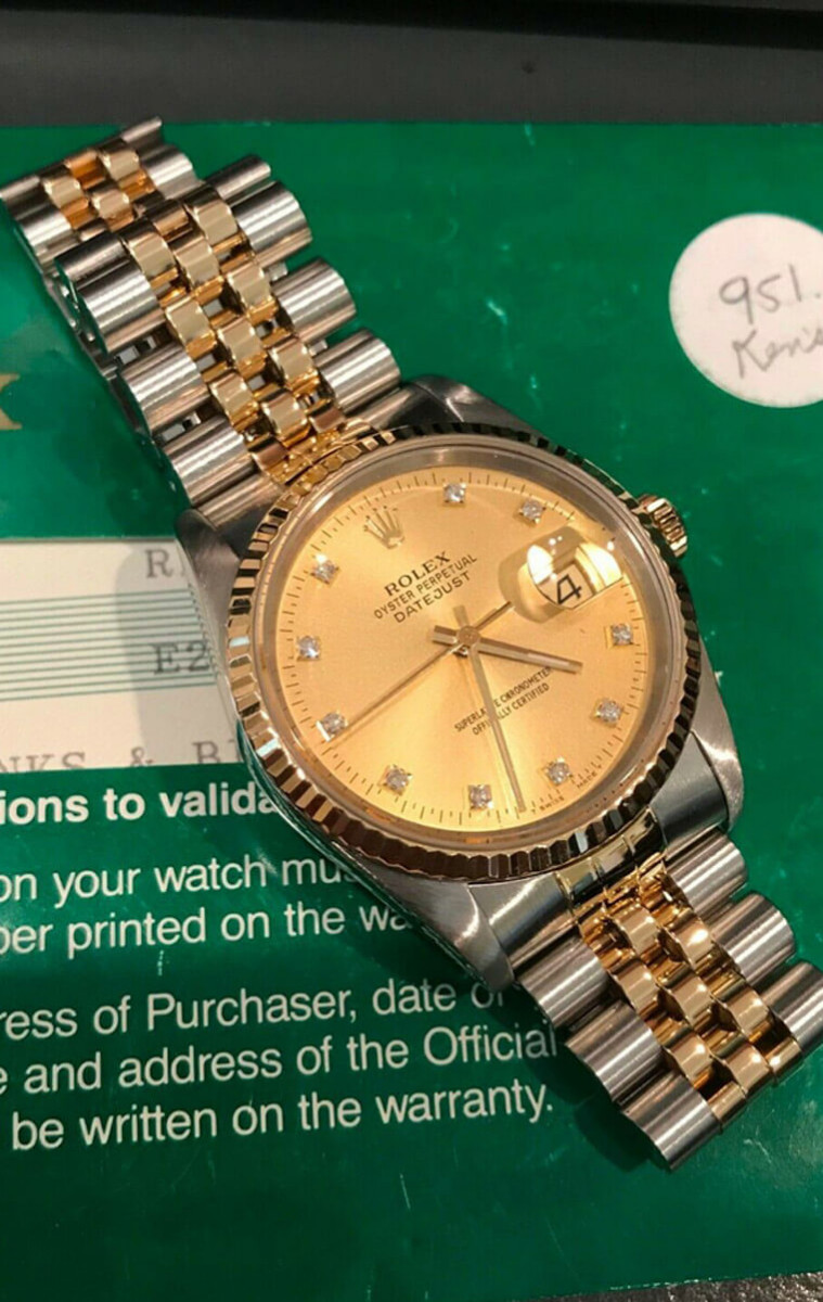 第四名——Datejust 36mm 18K & SS Diamond Dial Jubilee香檳面。圖片:ebay.com