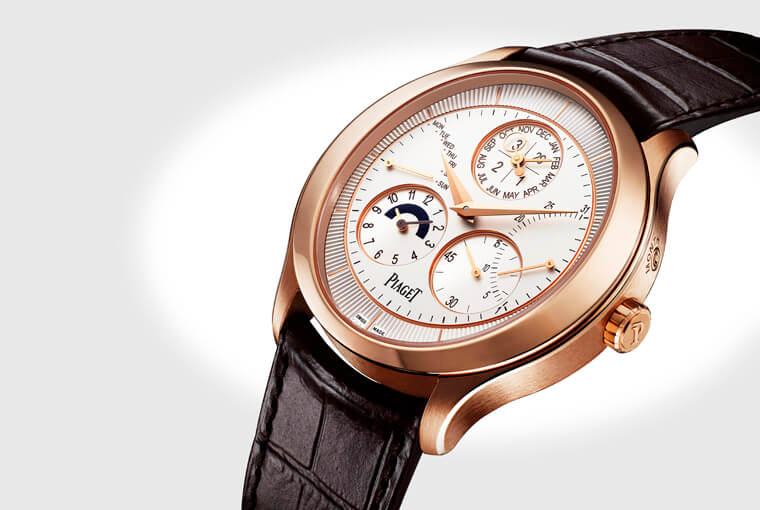 錶壇中擅長製作超薄錶的PIAGET伯爵其實研發複雜功能也很有一套,如他們家的Black Tie系列就產出過不少特別又令人驚嘆的高複雜手錶,以本次介紹的Gouverneur萬年曆手錶為例,它就是屬於高階萬年曆的設計,除此之外它的面盤上還加碼雙逆跳設計,不僅每週、每月會上演震撼的逆跳場面,來到四年一度的閏年,在2020年2月底也將出現另一場2月無縫接軌到3月的換月戲碼。