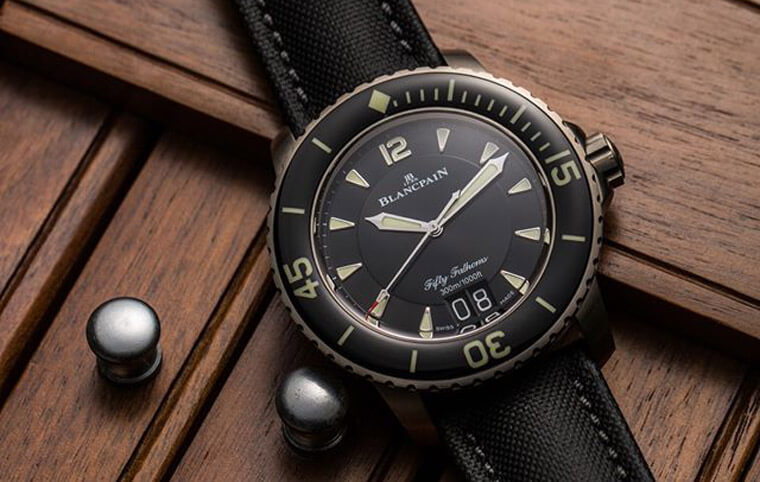 BLANCPAIN寶珀在2018年首度推出具備大日期顯示的五十噚。五十噚是品牌旗下最受歡迎的系列,大日期也是寶珀頗具代表性的複雜功能,但令人有點意外的是結合這兩者的產品自從這一代五十噚於2007年推出以來,竟然從來沒出現過!當然,大日期對於真正的專業潛水錶來說不算是必要的功能,歷史上許多經典的潛水錶是連日期顯示都沒有的,然而考量到像寶珀這種價位的牌子推出的潛水錶實際上還是以日常佩戴居多,這款為它加上生活中常用到的日期顯示反而又是個具有機能性意義的決定了。