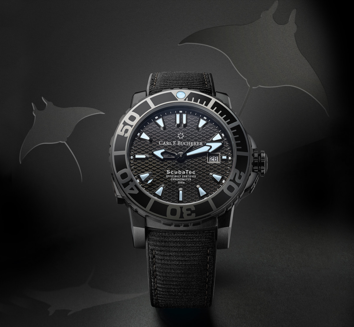 全新柏拉維深潛手錶碳黑款擁有令人驚豔的功能,並以堅固可靠與出色性能見稱。 超輕盈鈦金屬錶殼和防刮陶瓷單向旋轉錶圈經霧黑色DLC類鑽碳塗層處理。錶圈同時配備60分鐘刻度和發光標記。精緻的黑色面盤飾有黑漆時標,而時標及時、分和秒針經Super-LumiNova夜光塗層處理,所發出的藍光可確保即使在黑暗中,手錶也能清晰顯示時間。