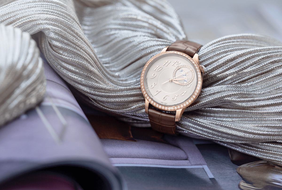 ▲專為該系列設計的手寫體刻度讓人聯想起精美的刺繡,而葉形時針和分針則呼應了高級訂製時裝裡於指間靈活穿梭的細針。外圈鑲鑽的日期顯示盤則詮釋著品牌經典的偏心設計美學,也成為了該款手錶的標誌性特點。