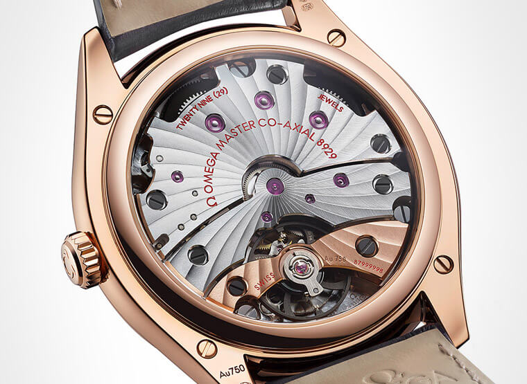 翻過錶背不意外是採用透明底蓋,但這款碟飛Trésor男錶讓人驚豔的是它沿用了同樣在2019年發表的碟飛Trésor 125週年紀念錶所搭載的8929機芯,這枚機芯通過了歐米茄近年讓人耳熟能詳的大師天文台認證,代表它具有能抵抗15,000高斯的抗磁性能,而且這枚機芯更是大師天文台系列中首見的手上鍊版本,其具有3日鍊動力儲存,日用性相對不俗,而且8929機芯的擺輪橋板還有別於其他機芯板件,特地使用Sedna™金打造(此指貴金屬版本,不鏽鋼款則是搭載擺輪橋板為一般金屬的8910機芯),搭配矽游絲材質無卡度游絲擺輪,展現品牌高端的技術研發水準,此外機芯本身的打磨修飾也很精彩,當錶主取下手錶時,便能好好欣賞機芯的精密機械美感。