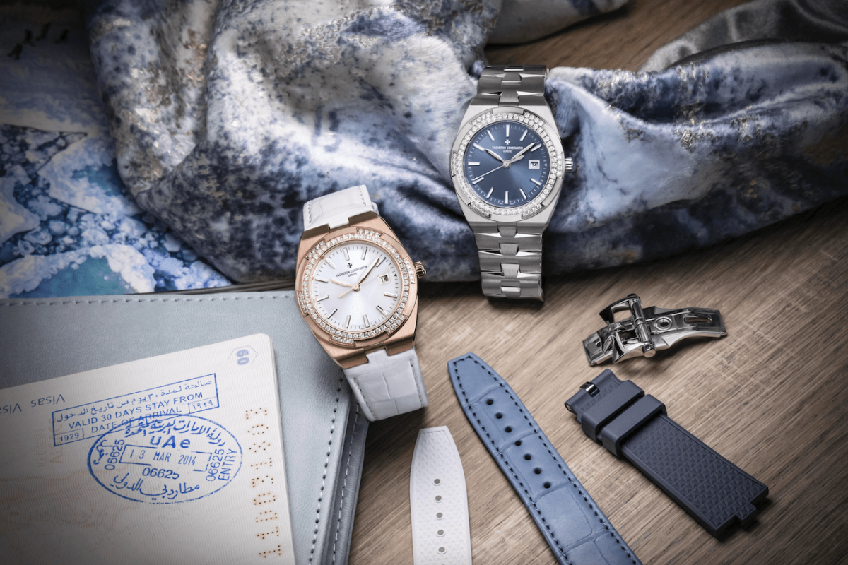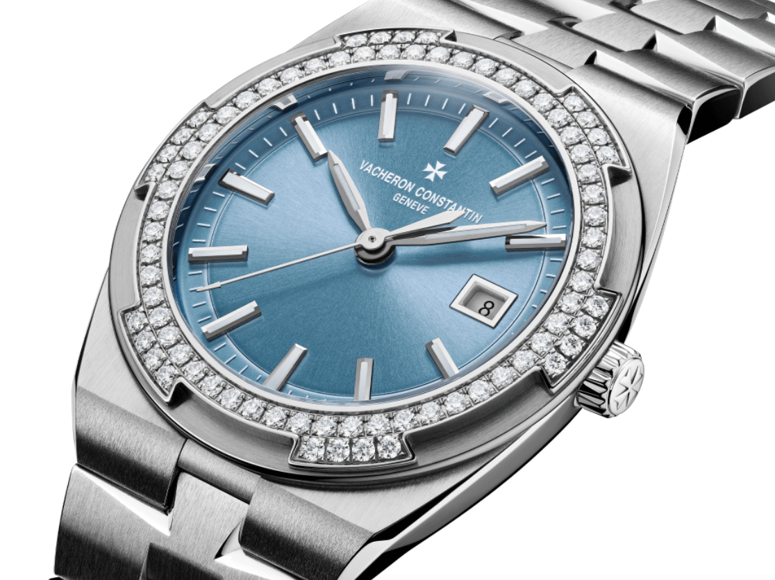 2020年Overseas系列再添女性腕間良伴,推出兩款全新女士時計:一款採用銀色漆面面盤搭配18K 5N粉紅金錶殼,另一款以原創的丹寧藍色漆面面盤搭配不鏽鋼錶殼。兩款手錶的六邊形立體錶圈形似品牌標識的馬耳他十字造型,均鑲嵌了78顆明亮式切割鑽石。旭日紋緞面拉絲漆面錶盤搭配多刻面夜光時標和指針,散發耀眼魅力。手錶實用而清晰易讀,錶殼線條簡潔流暢,錶帶可根據佩戴者的需求輕鬆替換,以搭配不同場合。