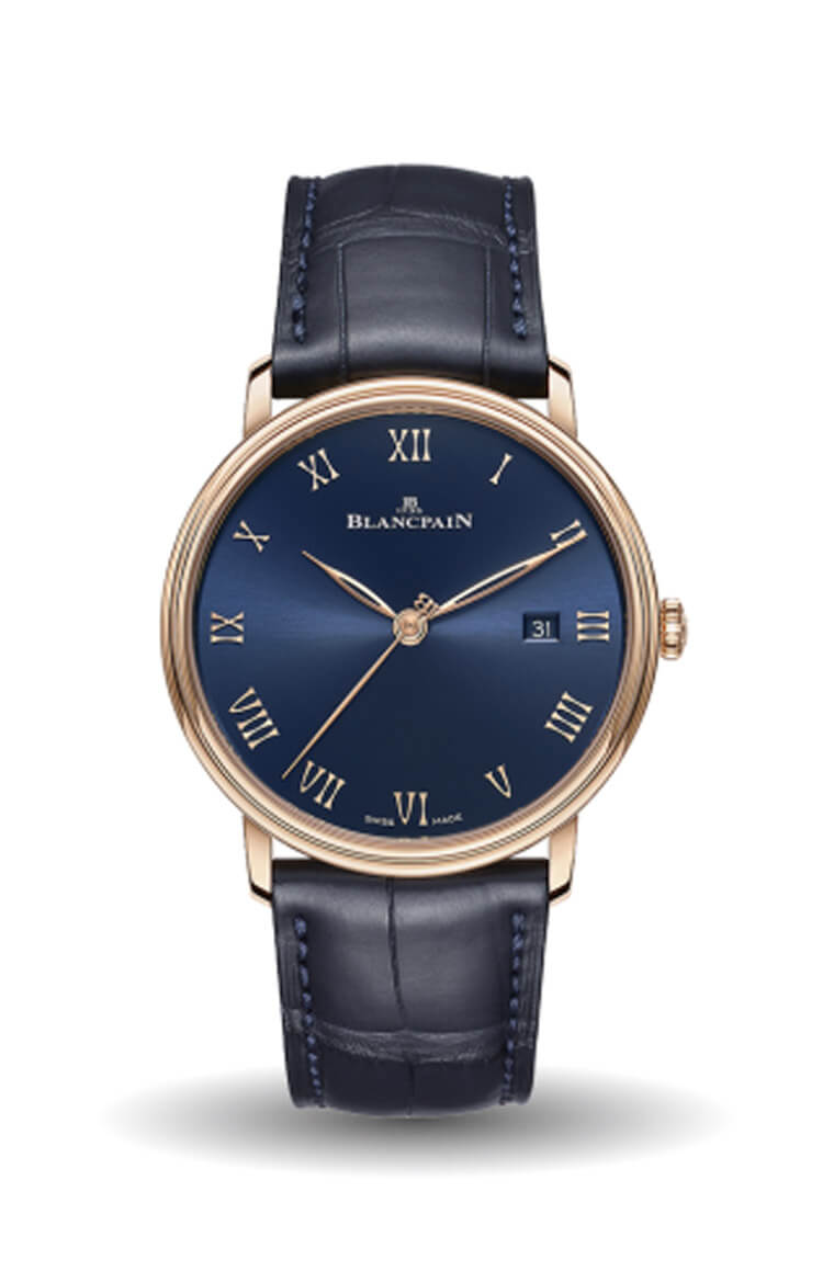 ▲常常給人典雅印象的寶珀Villeret系列面盤多數以白色為主,不過最近品牌新出的兩款採用了藍色面盤,在古典氣質之上增添紳士的男人味。