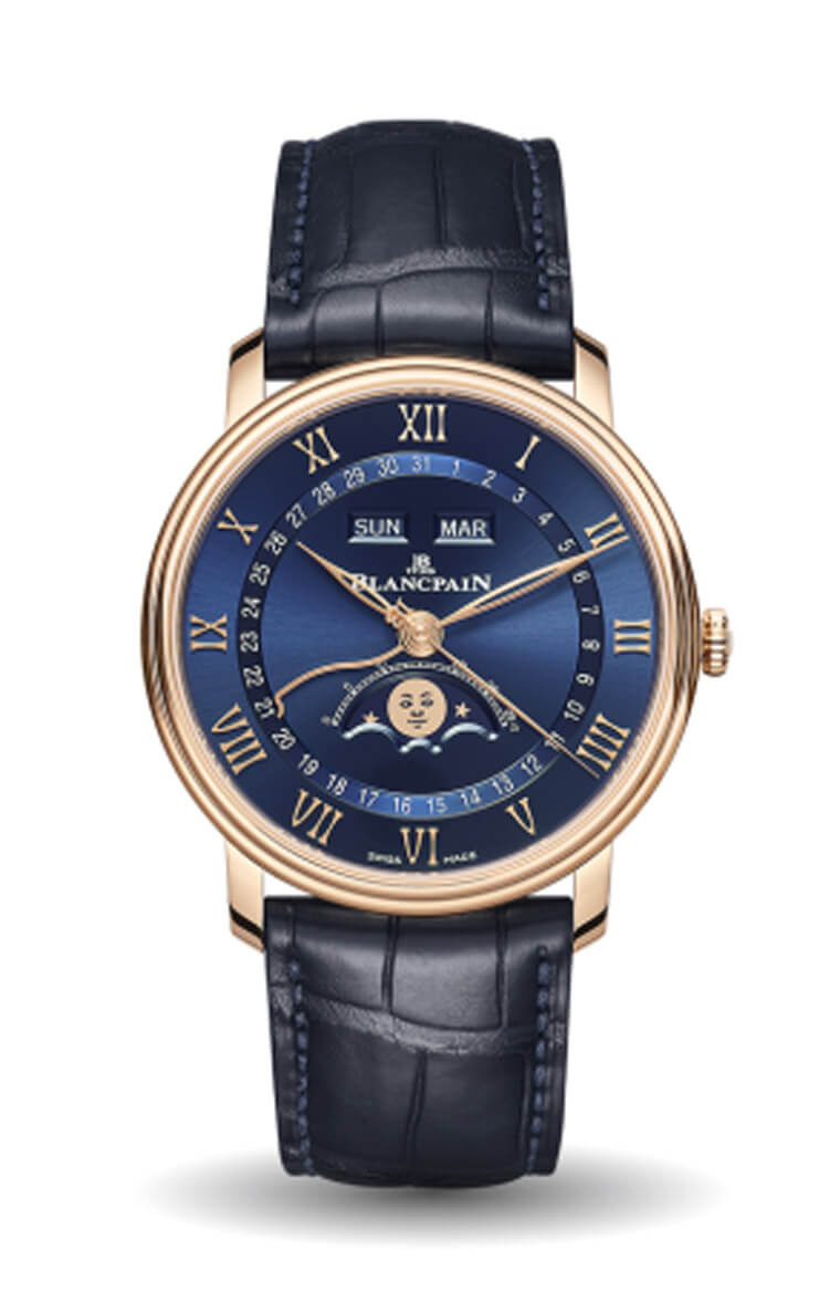 2020年,BLANCPAIN寶珀最為經典的手錶系列Villeret發布兩款新品,將線條輪廓的純粹之美與藍色所代表的深邃尊貴融為一體。藍是寶珀的代表色,如今品牌新推出Villeret經典系列中的兩款標誌性錶款——全日曆月相錶與大三針超薄錶,寶珀特別打造深邃藍面盤搭配高貴的玫瑰金錶殼。