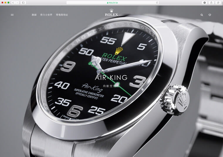 前幾天小編想要上勞力士官網找一下資料,不去還好,一去就傻眼了。因為點進去之後發現網頁畫面一片空白,瞬間腦中閃過好幾個念頭:App當機?手機中毒?勞力士出包?原本想說先放在一邊等之後再去看看恢復了沒,結果這兩天用桌機想連他們官網還是一無所獲,一開始小編用Google Chrome開網頁,結果和之前用手機看一樣,畫面潔白得讓人不自禁抖了一下;於是小編又換了Mac內建的Safari開啟勞力士官網,這次進入網站有畫面了,是斗大的Air-King沙龍照(誤)!但看看又覺得好像哪裡怪怪的,這時想起之前進入勞的官網,首頁點進去應該是出現影片才對,結果現在變成像是影片定格的畫面,而且點圖片也沒反應,接著小編再把頁面往下拉,看起來更詭異了,下面應該是圖和文對應的系列介紹,可是現在只剩文字,圖片都不見了,下面那些系列介紹的文字點進去雖然能連到系列頁面去,但跟外面這個頁面的問題一樣——幾乎只剩文字,圖片都不見了。