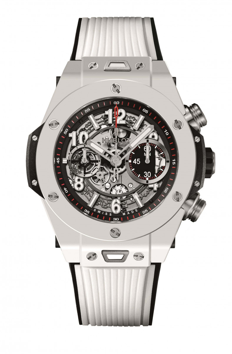 陶瓷材質/HUB1280自動上鍊機芯/時、分、小秒、日期顯示/計時碼錶功能/藍寶石水晶鏡面、透明底蓋/防水100米/錶徑42mm/參考價:NT$ 586,000
