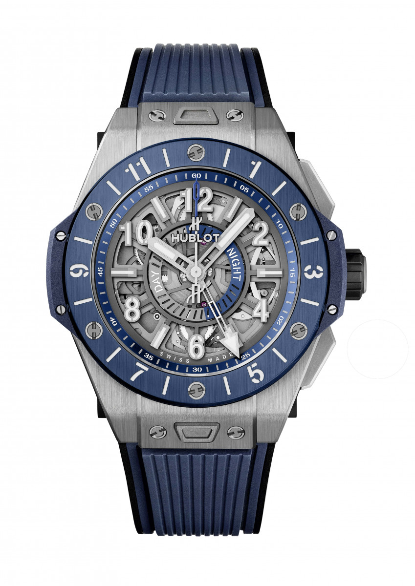 鈦金屬材質/HUB1251自動上鍊機芯/時、分、小秒、日期顯示/計時碼錶功能/藍寶石水晶鏡面、透明底蓋/防水100米/錶徑45mm/參考價:NT$ 651,000